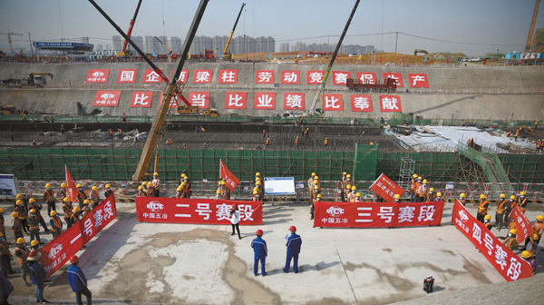 圖為中國五冶勞動競賽現場。