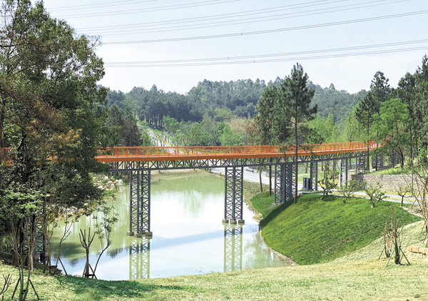 四川省設(shè)計院設(shè)計管理人員陳利表示,永安湖城市森林公園著力打造青少年生物科技科普展示場景、藝術(shù)生活體驗場景以及生物科技企業(yè)互動場景。曲灣幽谷、平湖松風(fēng)、梯田花海、空中棧道眾多“景點”競放異彩,處處都能體現(xiàn)“知識+藝術(shù)+健康”的設(shè)計理念。