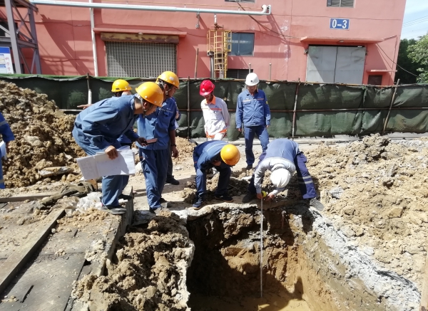 梅鋼冷軋酸再生機組系統投產達到年限,工況條件趨向老化,不利環保。現對該系統進行升級改造,滿足環保要求。改造主要對2號機組主煙道文丘里洗滌器進行冷卻和除塵功能改造、焙燒爐下料口改造、氧化鐵粉倉除塵器改造等,并根據工藝要求,新增相應的供回水管路、供配電線路等公輔配套土建基礎設施。開工當天,室外高溫,施工人員落實現場防暑降溫措施,頂著太陽按施工方案開挖基坑,確認基礎設施埋深,有序施工。