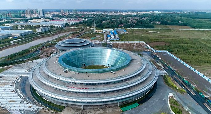 此項目位于河北省滄州市肅寧縣,項目總占地32248平方米,總建筑面積32919平方米,由兩個圓形建筑組成。其中,主體建筑地上四層,建筑面積27912平方米,多功能報告廳建筑面積5007平方米。項目建成后,將涵蓋電子商務交流平臺、智能制造研發平臺和會議會展商務平臺等服務功能。作為2020年第八屆中國淘寶村高峰論壇的主會場,此項目的進度對協同園區和肅寧電商產業發展具有重要意義。
