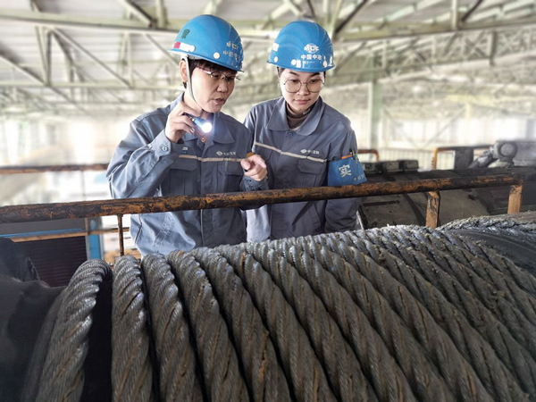 圖為中冶寶鋼湛藍巾幗班組組員正在檢查天車設備。