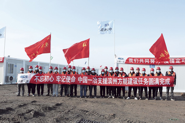 圖為中國一冶天津公司濱州兩個在建項目部圓滿完成支援濱州方艙建設任務。