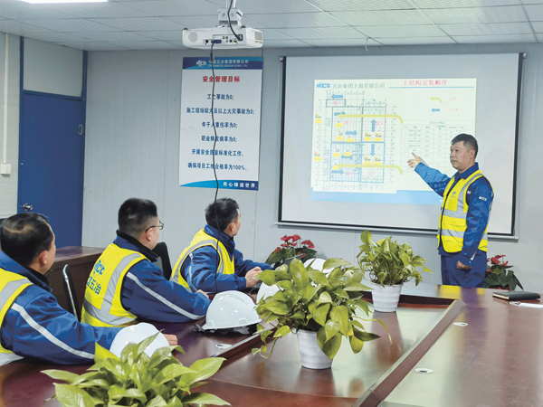 正式開工后,該項目部按照各項任務倒排工期,細化時間節點,全力滿足業主的進度要求。為實時掌控現場進度狀況,黃能在保障施工安全和質量的前提下,組織管理人員通過精細管理和技術創新,在施工組織和技術保障上做文章,應用BIM和P6軟件,實施可視化施工和數據量化監控管理,提高項目管理效率。面對復雜多變的施工情況,黃能堅持每晚組織召開“天天讀”會議,對當天工作中遇到的問題進行復盤,組織討論解決,并根據實際情況不斷調整優化施工計劃。