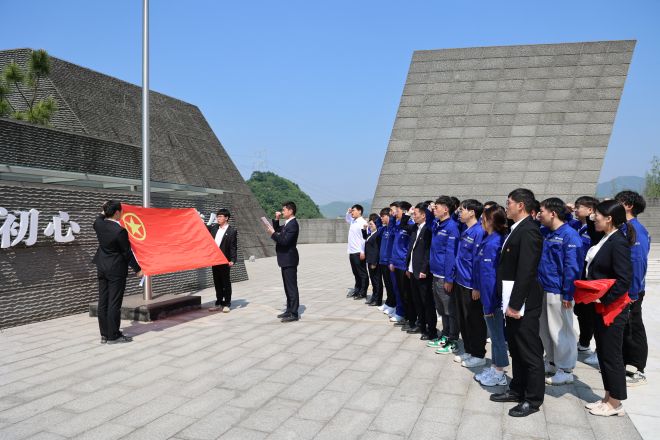 參觀學習結束后,全體團員面朝團旗,緊握右拳,在團支部書記的帶領下莊重宣誓,共同重溫入團誓詞。