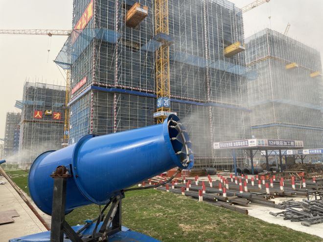 為了實(shí)現(xiàn)綠色節(jié)能環(huán)保的規(guī)范要求,項(xiàng)目部引入安全圍擋、塔吊噴淋系統(tǒng),實(shí)現(xiàn)施工現(xiàn)場(chǎng)區(qū)域防塵全覆蓋;多功能灑水車,降塵水炮噴射距離可達(dá)15米;施工現(xiàn)場(chǎng)裸露地面100%防塵網(wǎng)覆蓋加綠色植被種植,有效實(shí)現(xiàn)雙覆蓋;施工現(xiàn)場(chǎng)設(shè)置26個(gè)太陽(yáng)能照明路燈,節(jié)約電量30%;生活區(qū)安置空氣能熱水泵,單次可有效加熱10噸生活用水,場(chǎng)地綠化率80%,綠植和景觀樹(shù)相得益彰,基本達(dá)到“三季有花,四季常青”。
