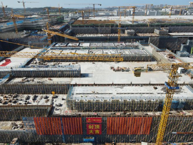 2023年5月31日,經(jīng)過101天的鏖戰(zhàn),由中國五冶集團(tuán)有限公司承建的廈門天馬光電子有限公司第8.6代新型顯示面板生產(chǎn)線項(xiàng)目總包三標(biāo)段項(xiàng)目5號(hào)綜合動(dòng)力站主體結(jié)構(gòu)順利實(shí)現(xiàn)封頂,比合同工期整整提前45天。