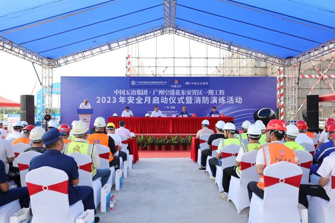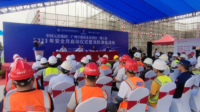 6月1日上午,廣州空港花東安置區一期工程項目2023年安全生產月啟動儀式暨消防演練活動在中國五冶集團承建的三標段現場舉行。業主單位、監理單位、各參建單位及施工班組代表共100余人參加了活動。