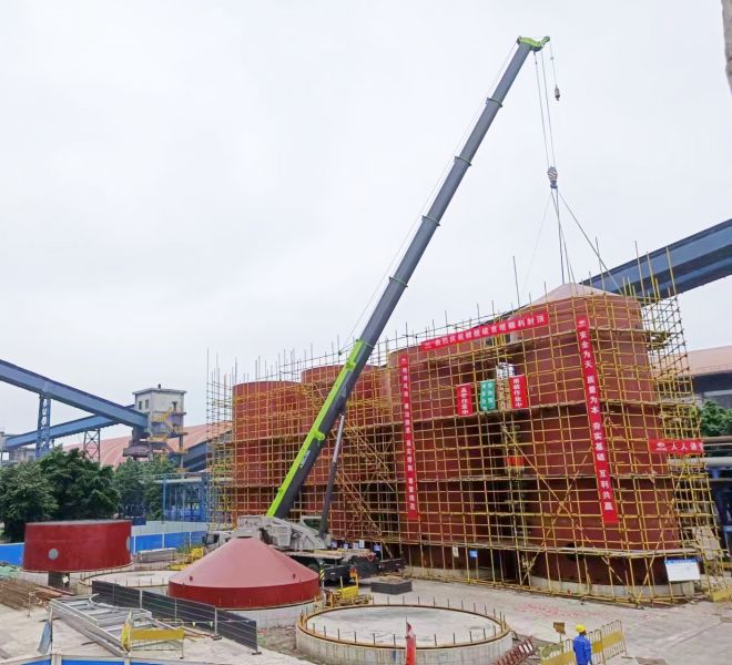 6月1日,由中國五冶集團(tuán)工程技術(shù)服務(wù)公司承接的重慶鋼鐵股份有限公司煉鐵廠焦?fàn)t煤氣精脫硫改造項(xiàng)目迎來重大節(jié)點(diǎn),脫硫塔首塔順利封頂。