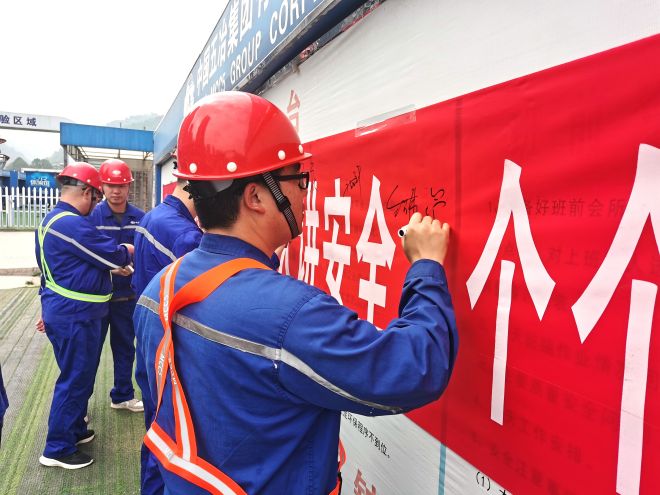 隨后,項目部管理人員與建設單位、代建單位、監理單位、協力單位管理人員在安全生產月宣傳橫幅上簽名并做出鄭重承諾。