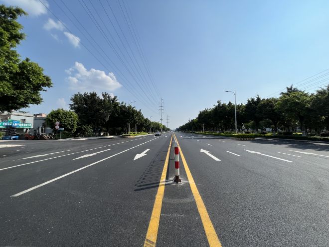 汽車城一期產業園道路改造項目,位于廣州市花都區秀全街花港大道(風神大道沿江大道),為城市主干路,長約3.8公里,寬60米,施工內容包括攤鋪瀝青路面、道路維修、雨污水井維修、交通標線改造等。