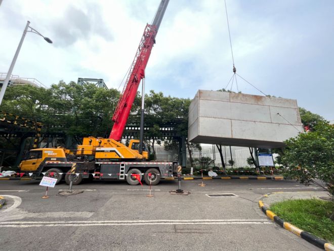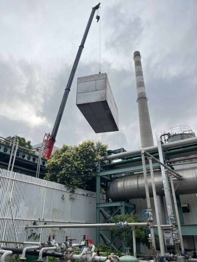本工程施工場地在地下放空槽,內部多為焦油,所以內部施工高要求,焊接前必須清理周圍焦油附著物,焊接時必須防止火星飛濺,改造框架焊接完畢后,將放空槽吊出至空地,再將焊接好的框架吊裝至設備位置,調整好后將放空槽放入框架中。本次吊裝作業面小且吊裝難度大,需重點在吊裝及內部施工時進行管控,施工期間作業部嚴格按方案實施,確保安全與質量。