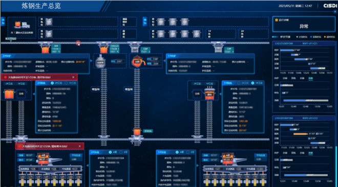 當(dāng)工業(yè)生產(chǎn)走進(jìn)數(shù)據(jù)爆發(fā)時代,如何讓海量數(shù)據(jù)創(chuàng)造更多價值,為生產(chǎn)管理人員提供問題浮現(xiàn)、持續(xù)改善的土壤,成為鋼鐵數(shù)智化轉(zhuǎn)型過程中的新問題。近年來,中冶賽迪信息組織工藝、設(shè)備、計算機(jī)及自動化等多專業(yè)技術(shù)團(tuán)隊(duì),圍繞煉鋼生產(chǎn)運(yùn)營需要,集成生產(chǎn)、物流、質(zhì)量、成本、倉儲等關(guān)鍵信息,建立生產(chǎn)運(yùn)營監(jiān)控與評價體系,異常事件和重要信息自動推送,及時反饋生產(chǎn)運(yùn)營情況,實(shí)現(xiàn)數(shù)據(jù)融合下的決策優(yōu)化和精益運(yùn)營。