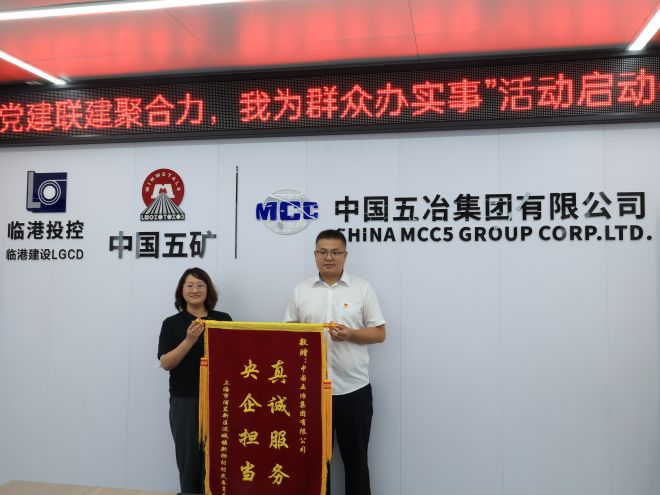 泥城鎮新泐村村民委員會為中國五冶項目部送上錦旗,感謝項目團隊為泥城鎮的建設發展做出的貢獻。