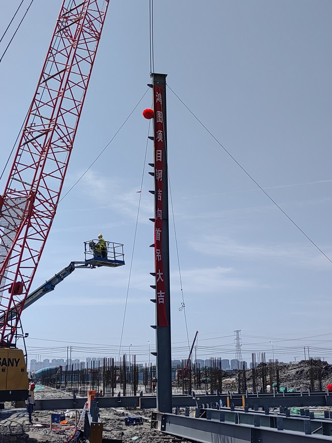 7月1日,隨著第一根鋼結構柱的徐徐吊起,中國五冶集團華北公司承建的廣東鴻圖輕量化智能制造華北基地一期項目正式進入廠房鋼結構吊裝施工階段。