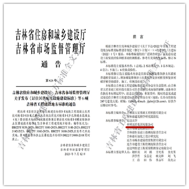 近日,吉林省住房和城鄉建設廳和市場監督管理廳關于發布《居住區供配電設施建設標準》等6項吉林省工程建設地方標準的通告中,華北公司代表中國五冶集團參與編制的《螺旋錐體擠土壓灌樁技術標準》(DB22/T 5008-2023)正式實施。