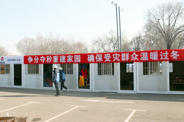 中國十七冶接到救援任務后,迅速抽調甘肅分公司青海互助片區項目團隊到受災現場開展選址及場地平整,同時成立黨員骨干帶領的抗震救災緊急支援工作隊,緊急組織采購100套裝配式活動板房及取暖、生活物資。2023年12月21日當晚8點30分,中國十七冶救援力量及首批物資、機械抵達現場,指導工作隊對場坪平整、吊車作業、人員分工及裝配工作做出周密細致的部署調度;22日凌晨1點,在-11℃的民和縣喇家村第一安置點,工作隊一刻不停推進活動板房調運、選址、安裝等工作;22日凌晨4點30分,工作隊隊員頂著困意和透骨的寒風,完成官東村第三安置點22套裝配式活動板房安裝,并部署第二、第四、第五、第六安置點建設任務;22日上午7點,緊張完成物資協調、工作準備的工作隊,抓緊開展建設任務;22日上午11點40分,工作隊完成鮑家村第二安置點20套裝配式活動板房安裝;22日晚上8點27分,隨著第100號門牌貼在第六安置點民主村的最后1套板房及剩余的紅崖村、團結村、魏家山村、民主村4個安置點28間活動板房安裝完成,標志著中國十七冶通過24小時分秒必爭,圓滿高效完成了100套裝配式活動板房援建任務。