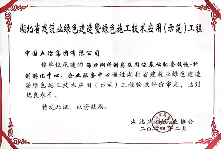 近日,由中國五冶集團承建的黃石新港港產(chǎn)城融合發(fā)展綜合配套項目海口湖科創(chuàng)島及周邊基礎(chǔ)配套設(shè)施-科創(chuàng)孵化中心、企業(yè)服務(wù)中心獲評“湖北省建筑業(yè)綠色建造暨綠色施工技術(shù)應(yīng)用(示范)工程”。這是繼榮獲2023-2024年度第一批湖北省建筑工程安全文明施工現(xiàn)場、2023年度湖北省建筑施工現(xiàn)場“六個工地”示范項目、2022-2023年度第四批“湖北省建筑結(jié)構(gòu)優(yōu)質(zhì)工程”和黃石市2023年度建設(shè)工程銅都杯結(jié)構(gòu)優(yōu)質(zhì)工程、安全文明施工現(xiàn)場雙獎項后,科創(chuàng)孵化中心、企業(yè)服務(wù)中心斬獲的又一獎項。