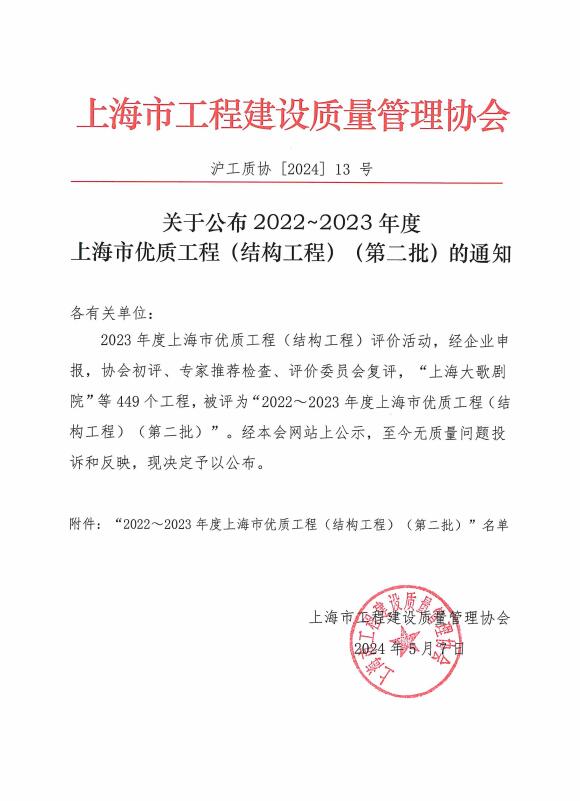 喜訊!中國五冶陸翔路(鄱陽湖路-楊南路)道路新建工程被評為2022-2023年度上海市優質工程(結構工程)