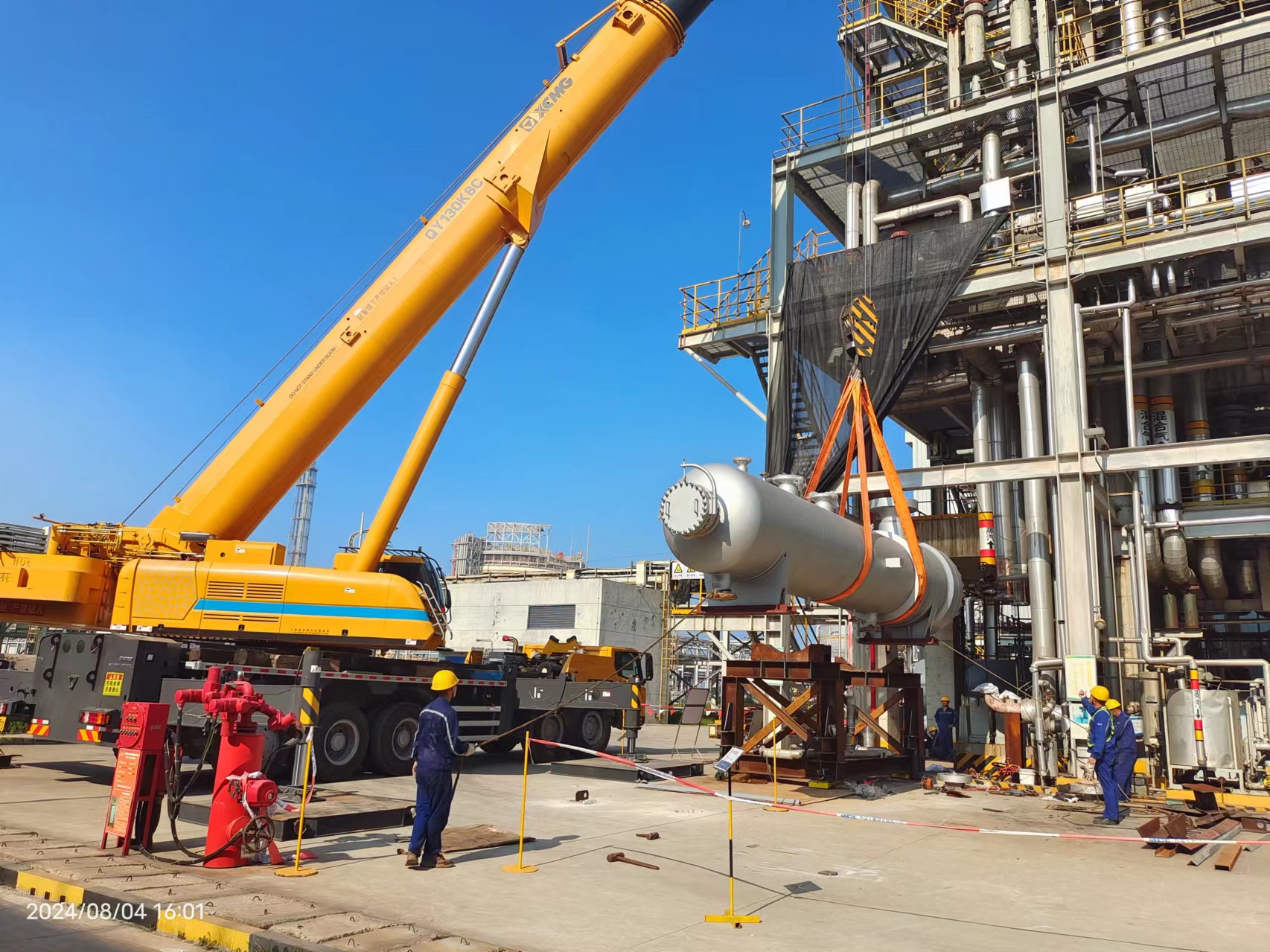 該項目位于山東省日照市東港區(qū),此次年修主要施工內(nèi)容為:對一、二步LNG及合成氨系統(tǒng)到期的安全閥進行集中拆除、回裝及相關(guān)的檢驗配合;在系統(tǒng)停工及開車階段集中對中高壓熱力管線及設(shè)備法蘭口進行冷熱緊固;對部分大型關(guān)鍵換熱器類設(shè)備進行拆卸、檢查、清理、維修及回裝,并進行部分換熱器更換等。本次年修二步LNG區(qū)域從2024年6月11日至2024年7月10日,從停機到開機共計30天;二步投產(chǎn)順利10天后進行一步、合成氨區(qū)域總停機,時間為2024年7月20日至8月19日,從停機至開機同樣共計30天,高峰期施工人數(shù)約146人,通過作業(yè)部高效組織,年修一步和二步均嚴格按照停機時間完成了檢修任務(wù),提高了設(shè)備生產(chǎn)效率,確保了產(chǎn)品質(zhì)量。