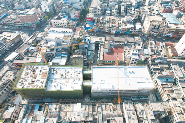 圖為中國五冶廣西都安瑤族自治縣新型城鎮化(一期)紅河農貿市場改造工程項目航拍。(中國五冶集團 供圖)