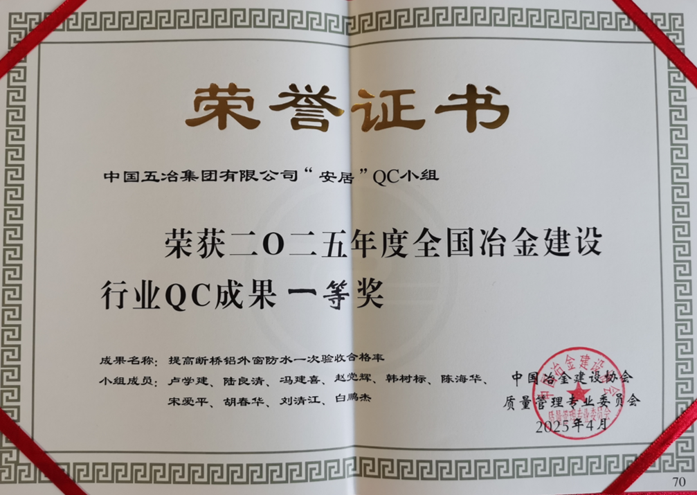 近日,中國五冶華北公司3項QC成果斬獲全國冶金建設行業(yè)QC成果一等獎。