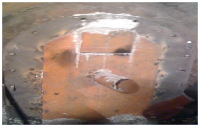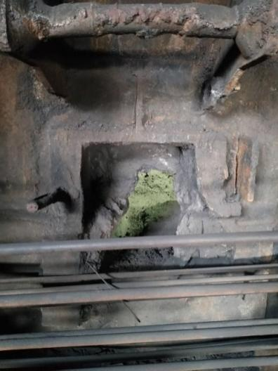 二是高爐短暫休風(fēng),割開鐵口處封板,將鐵口區(qū)磚襯或澆注料清除,里面露出紅色渣鐵。