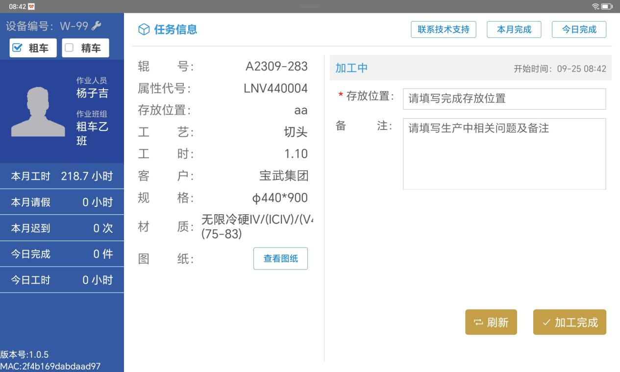朝陽(yáng)聯(lián)強(qiáng)軋輥有限公司數(shù)字工廠MES系統(tǒng)手持終端功能。