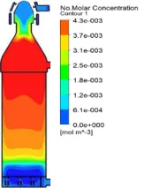 圖12 新型頂燃式熱風爐仿真計算全爐NOx分布云圖