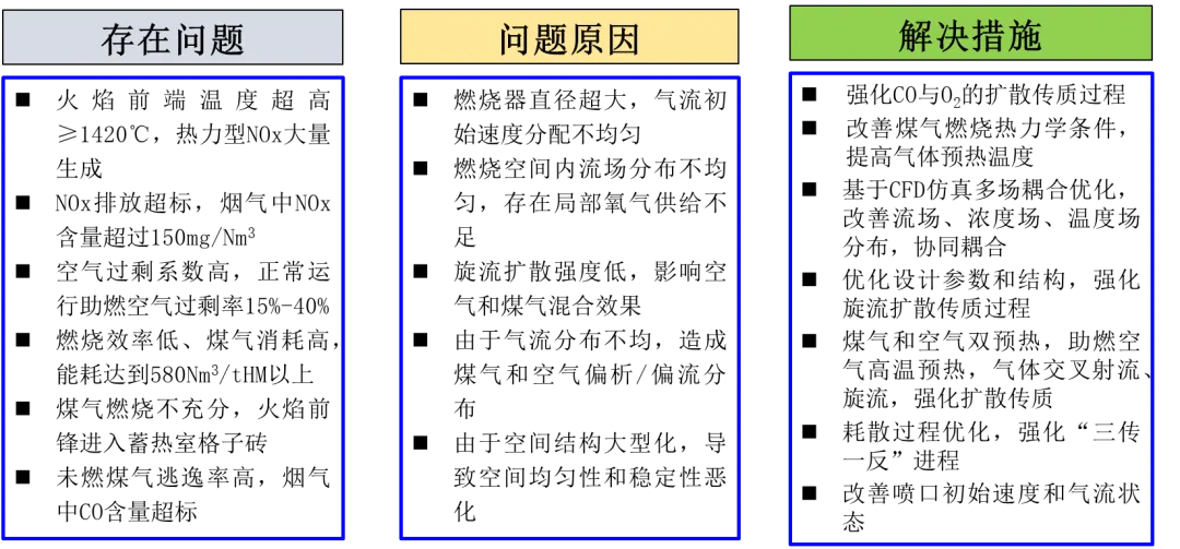 圖13 超大型熱風爐燃燒過程的技術難題及解決措施
