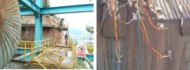 研究發現造成爐殼失效的裂紋主要是爐殼內表面焊縫附近的疲勞裂紋,原因是焊縫附近應力超過了材料的疲勞極限,為此開發出熱風爐焊縫附近局部區域應力監測技術(圖26、圖27)。與此同時,還開發出一系列兼顧應力控制和爐殼防腐的熱風爐爐殼修復技術。針對拱頂整體修復、局部修復和新建熱風爐分別從材質、裝配、焊接工藝、應力控制等方向對方案進行了優化,最大程度考慮了應力控制和防腐問題,在生產實踐中應用取得顯著效果。