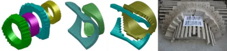 基于彈塑性結構力學和材料力學理論,復雜管系采用專業管道分析軟件進行建模分析(圖28),對管道的支吊架和補償器進行優化設計,形成了以三角形剛性拉桿為代表的熱風爐管道安全長壽設計方法和結構(圖29)。開發研制出異形鎖砌結構的組合磚,顯著提高砌筑結構穩定性。設計開發了熱風管道新型自鎖密閉式砌筑結構(圖30)、補償器內部耐火襯砌筑結構(圖31)。本研究包括熱風支管結構優化設計、熱風管系仿真計算分析、熱風管道低應力管系設計、熱風支管預變位技術、熱風管道耐火材料結構優化等。