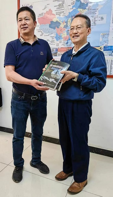 采訪結束后,記者夏杰生代表中國冶金報社向仙福鋼鐵煉鐵廠贈送本社編輯出版的大型冶金科普圖書《鋼鐵工業(yè)節(jié)能減排新技術5000問》。(左)為仙福鋼鐵煉鐵廠常務副廠長李風寶。(周紅朝 攝影)