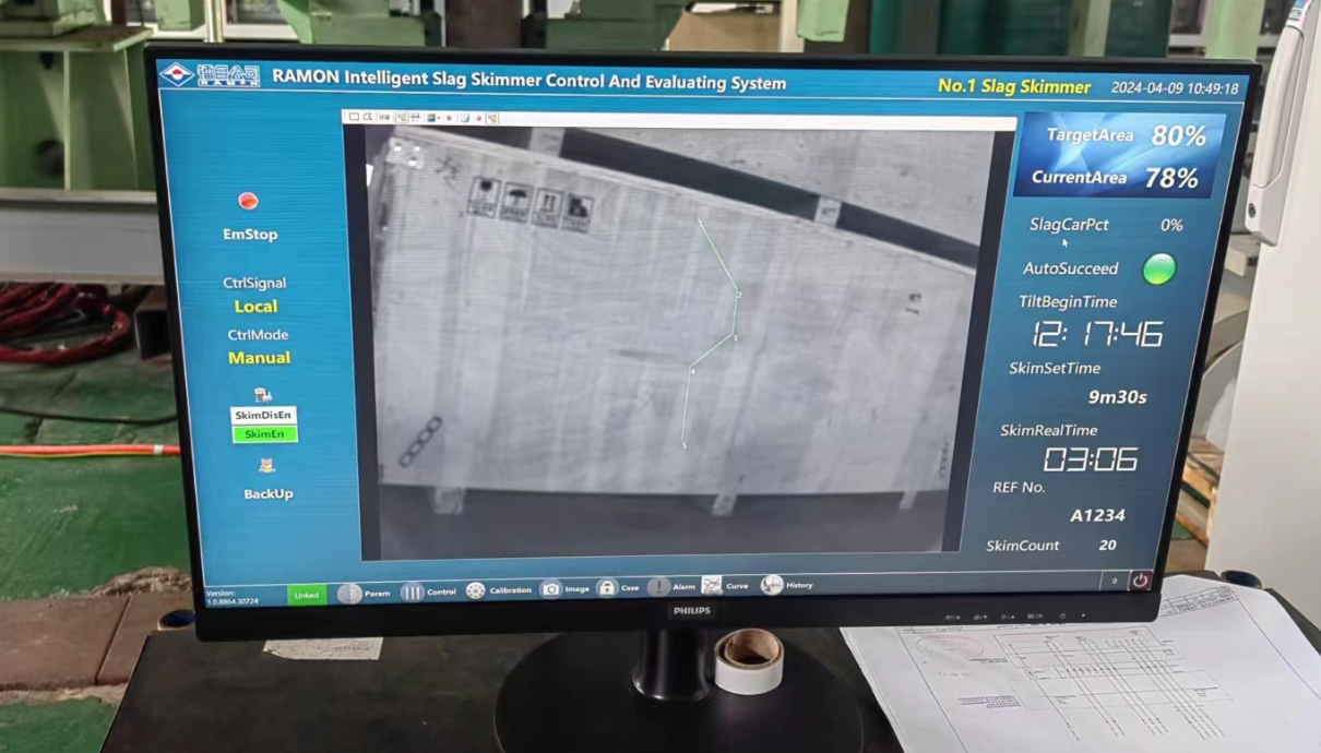 鐳目智能扒渣系統集成了視覺識別、激光定位及圖像自動判渣等尖端技術,能夠精準識別鐵渣分布,并動態規劃扒渣路徑,實現全自動化操作。引入鐳目智能扒渣系統后,JFE鋼鐵預計將大幅提升扒渣作業效率,有效降低鐵損,并在規定時間內實現95%以上的高除渣率,相較于傳統人工操作,效率得到極大提升!