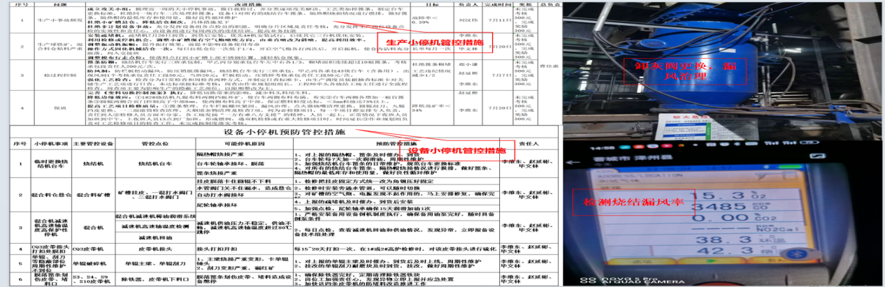 強化燒結操作穩定性:制定日參數控制及操作方針標準卡,主任進行把控,嚴格按操作方針執行操作,改善過程穩定性。