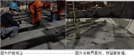 談到該高檢修具體過程,章榮會博士如數(shù)家珍。首先,在高導熱澆注料澆注,即環(huán)碳砌筑過程中循序漸進和爐缸砌筑施工方密切配合,在不占用主線工期的情況下順利完成。聯(lián)合榮大的施工人員在每砌筑三至四層后,采用高導熱澆注料對碳磚與冷卻壁熱面之間縫隙進行澆注密實。在砌碳磚期間分四次進行了澆注,不占主線工期。