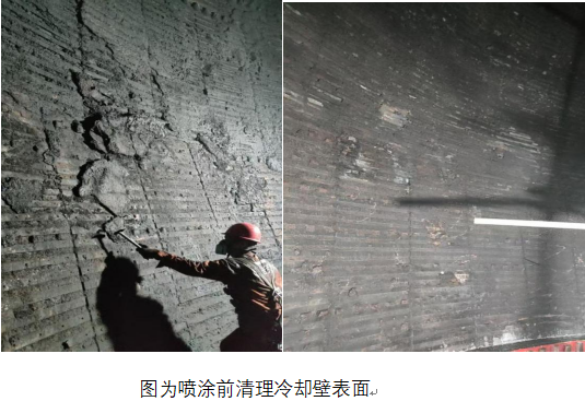 三是在內(nèi)襯噴注過程中,采用高爐內(nèi)襯剛玉碳化硅噴涂料,并采用人工抱槍噴注修復爐腹,恢復高爐操作爐型。