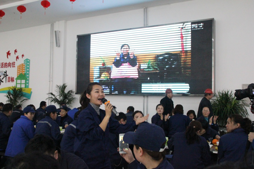 演唱者圍繞著每一排餐桌,把歌聲獻(xiàn)給每一位員工,所到之處贏得員工的掌聲、喝彩聲。餐飲中心大廳內(nèi)歡聲笑語(yǔ),喜氣洋洋,充滿(mǎn)了濃濃的節(jié)日氣氛。