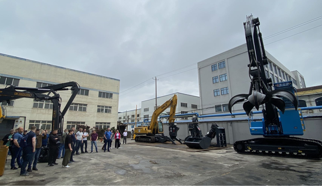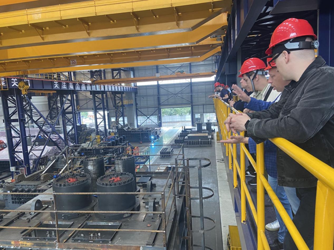 盡管已經在本國體驗到了中國設備的良好性能,俄羅斯同行們還是秉承認真務實的原則,在華宏工作人員的陪同和講解下,仔細參觀了近10個車間,考察了龍門剪、打包機、抓鋼機、屑餅機等數十種設備?,F場指點、討論聲不絕于耳。必要時,這些俄羅斯壯漢甚至自己動手,爬上三四米高的抓鋼機的主機箱去研究電機的內部構造,還會鉆進駕駛室感受真實的操作體驗,當感到設備頗為趁手時,還會會心一笑。