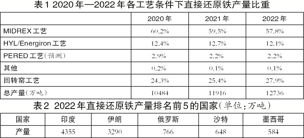 此外,統計數據顯示,2022年,接近70.1%的直接還原鐵是使用天然氣還原的,29.9%是采用煤基還原的。2022年,印度直接還原鐵的總產量為4355萬噸,其中3539萬噸的直接還原鐵是采用回轉窯工藝生產的,816萬噸是采用氣基直接還原工藝生產的。
