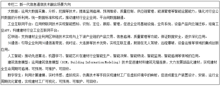 ——創新能力明顯增強。建立5個建材行業智能制造創新平臺,形成15套系統解決方案,突破50項建材領域智能制造關鍵共性技術,培育100個建材工業APP,形成若干大數據、云計算、物聯網、區塊鏈、5G通信、虛擬現實、工業互聯網等新一代技術應用場景。