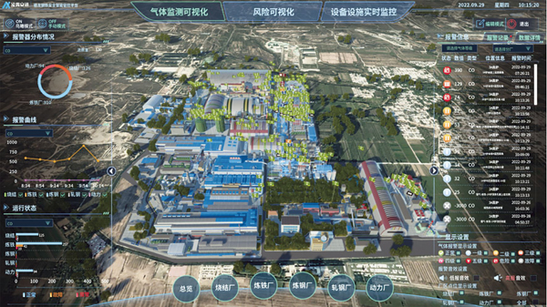 圖為德龍鋼鐵安全智能管控平臺的“氣體監測可視化”界面