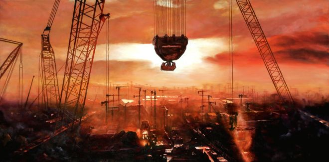 《升井的礦工》水彩 郭建國(梅鋼)