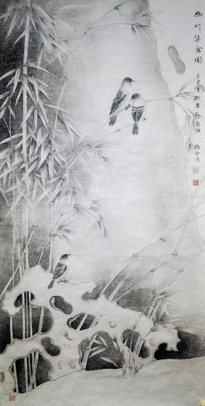 《幽竹集禽圖》國畫 楊雪清(包鋼)