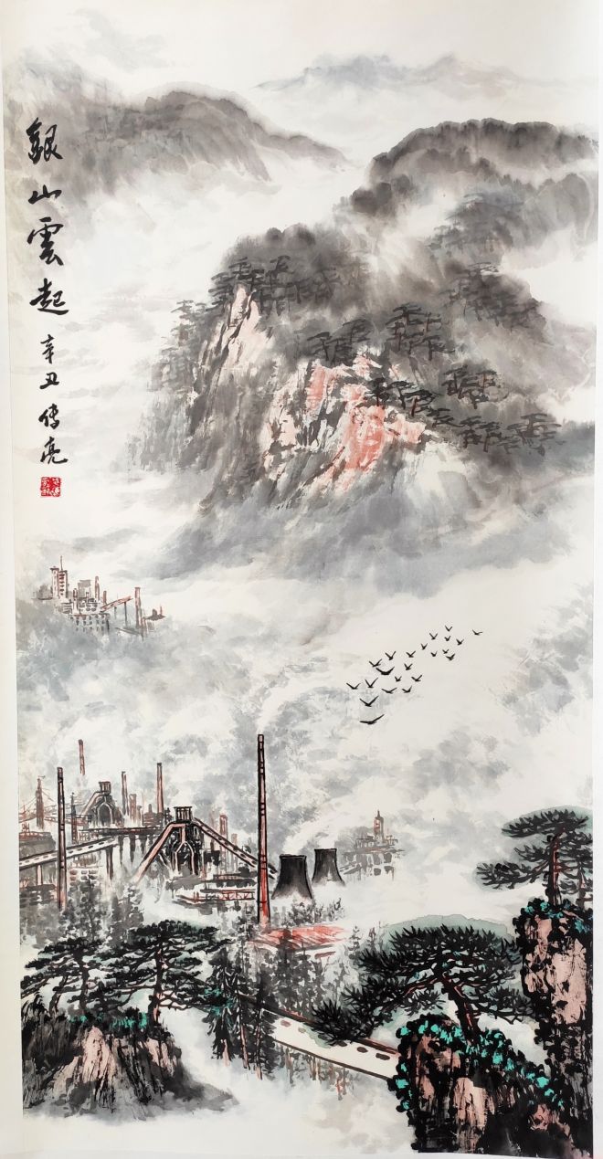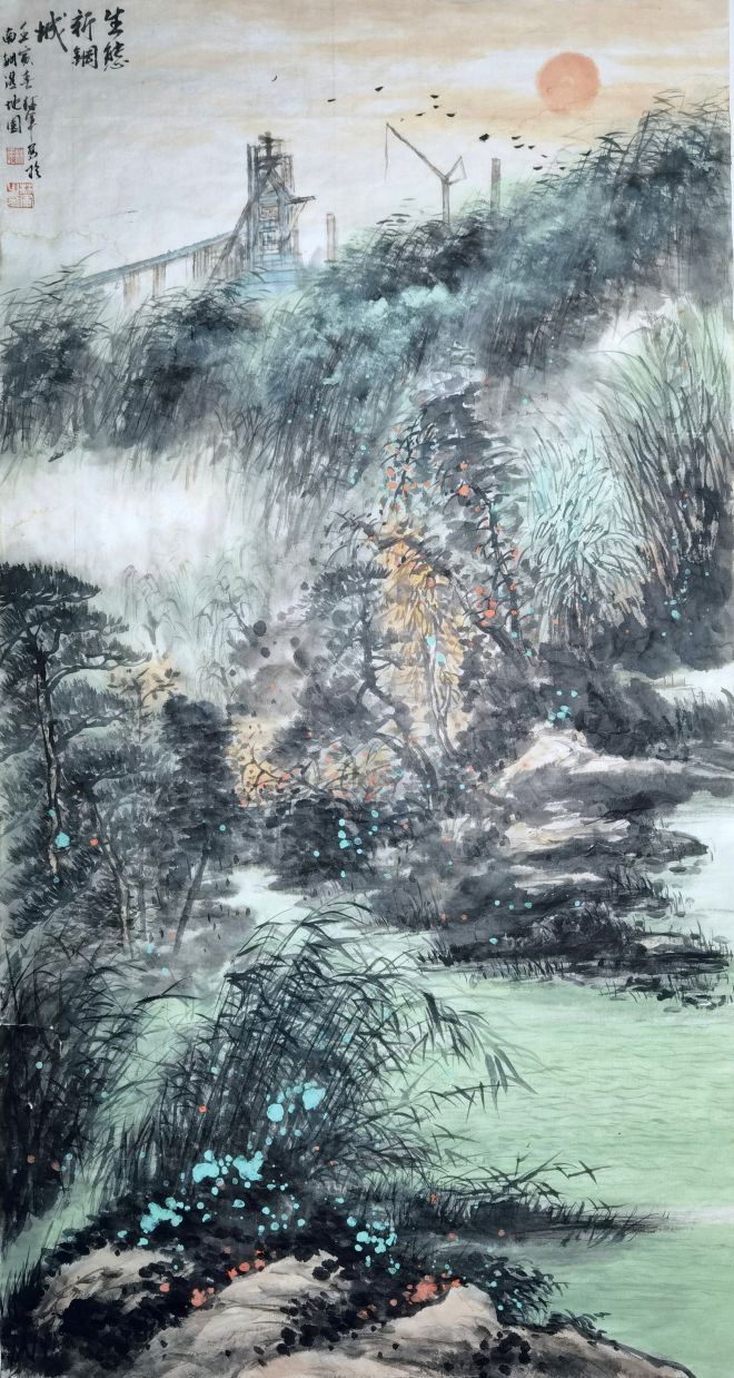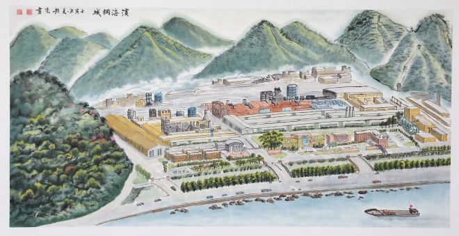 《十里鋼城換新顏》國畫 顧源先(首鋼)