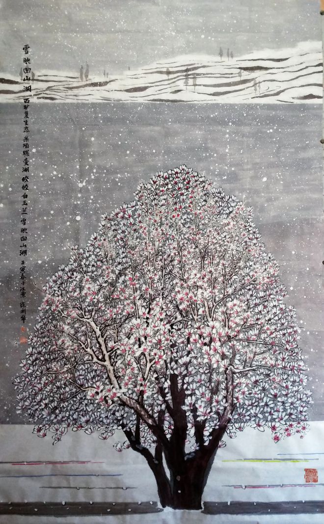 《雪映凹山湖》國畫 徐利華(馬鋼)