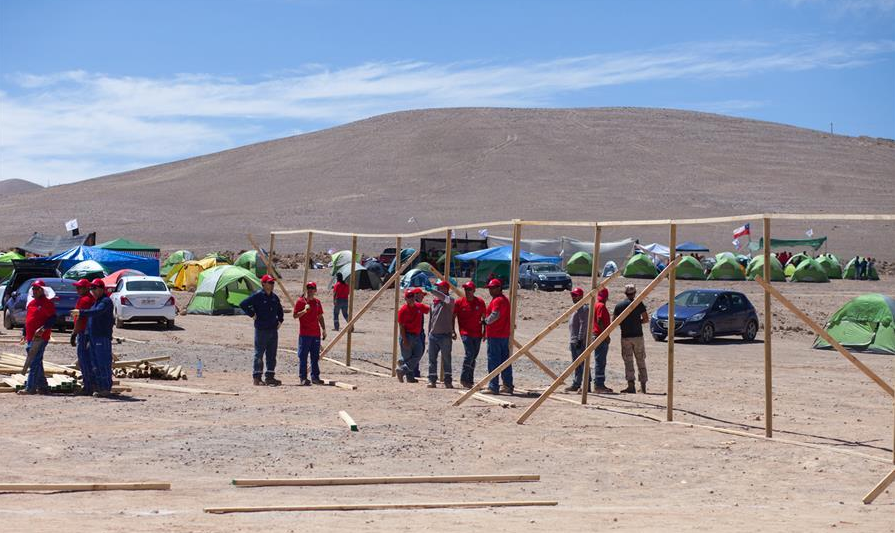 Workers of the mine in Escondida set up a camp outside a mine during a strike, in Antofagasta Region, Chile, on Feb. 9, 2017. Australian mining powerhouse BHP Billiton has been rocked as a strike began Friday at their Escondida holding in Chile, the world's largest copper mine.